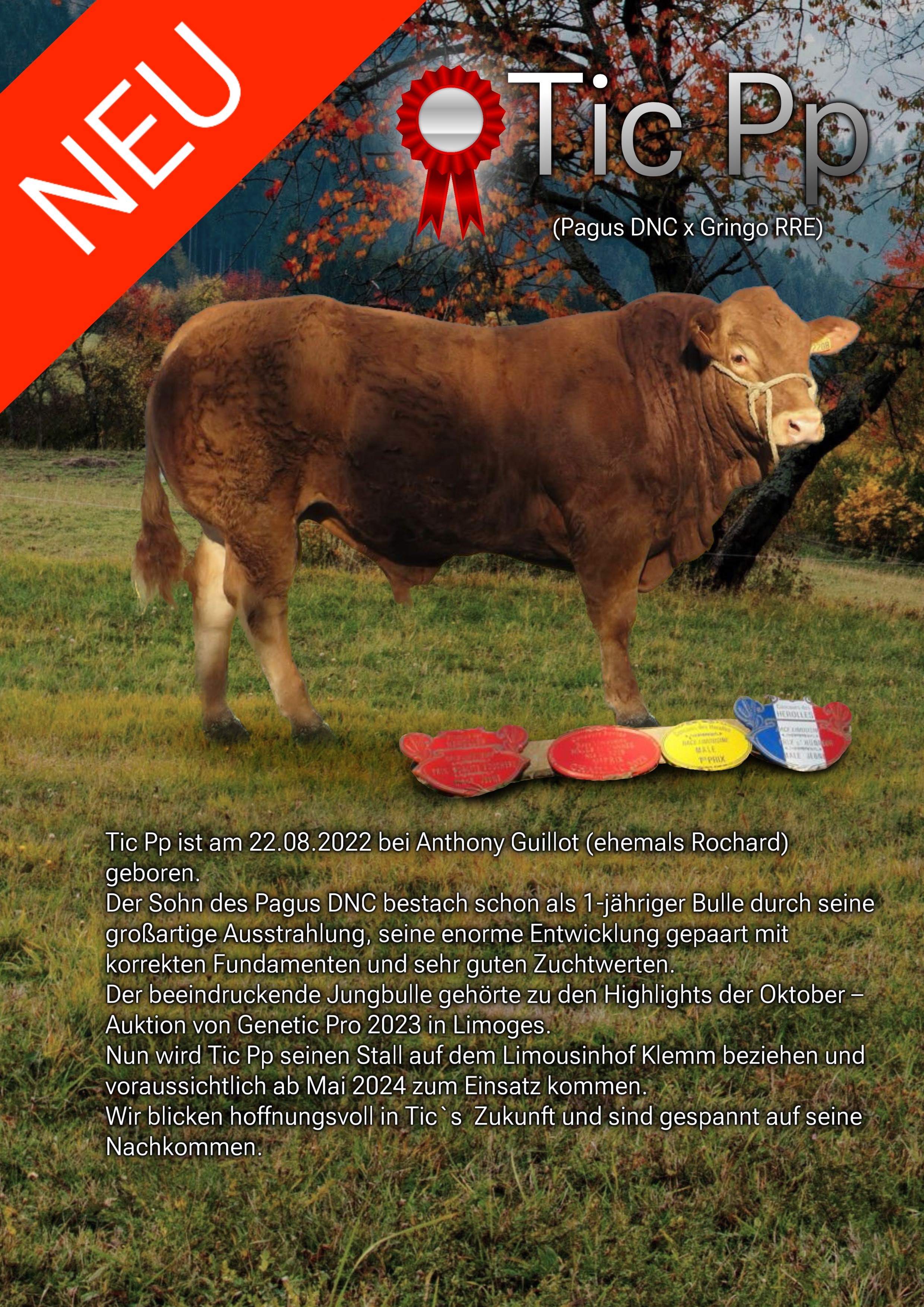 Die ersten zum Verkauf stehenden Tic Pp- Nachkommen werden zur Auktion am 20. 06.2026 anlässlich des 35jährigen Jubiläums -Limousinhof M. Klemm- zur Versteigerung kommen.